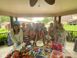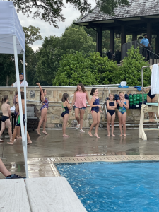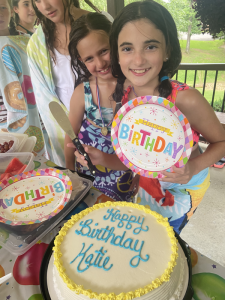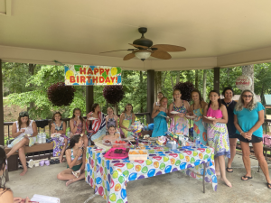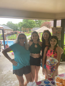 Friday, both girls went to swim and dive; they were in the pool 7:45 until 10:30. We headed to get the Rhoads’ girls afterwards then went to Mimi’s house for Katie’s 12th birthday party and make sure everything was set up. As soon as Katie’s friends arrived at 1, they all were making a splash in the pool again. It was sweet watching the kids play, laugh, and have a good time together. Her friends left at 5 but our girlies were in the pool until close to 6 when we pulled them out to have dinner then head back home.
