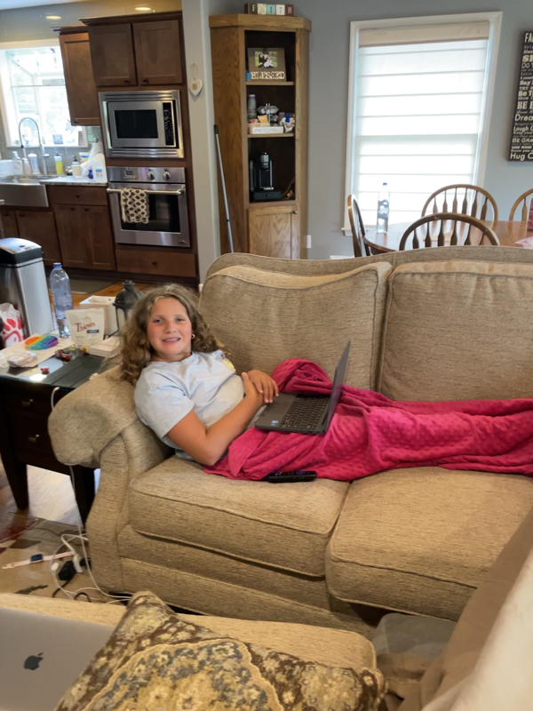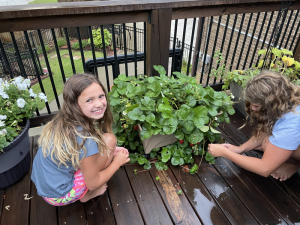 Tuesday, the girls headed to the ranch to ride horses bright and early again. Chris headed into the office to start his hybrid work week of working in the office Tuesday and Thursdays. Lisa did not start working right away as she was not feeling that great. Shortly after 7:30 Leia called and said she had a headache so Lisa headed to the ranch to pick her up early. Lisa ended up napping a couple hours when she was going to lay down with Leia while Leia played on her iPad. The alarm went off which alerted us to get Ivy. Lisa worked a couple hours and took Leia to vision therapy but other than those two things we chilled at home. Ivy was excited when she discovered a dozen or so strawberries on our plant that they girlies got to pick and eat late that afternoon. All the ladies in the house had on PJs before 5 pm. We watched a couple Disney shows but went to bed early to rest up.