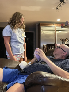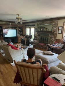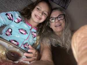 Thursday, we slept in at our house. Mimi cooked Ivy her chocolate chip pancakes, took Ivy to get her nails done, and rode the golf cart and bikes then called and offered to come get Leia for lunch and the rest of the day since Lisa was not leaving the couch again. So thankful for a momma who comes to get the girls and provides entertainment when momma is not up for it. Mimi even brought the girls back that afternoon when she picked up Katie for her one on one night. We chilled out at home with another movie night with popcorn and mom/Ivy played Uno before bedtime.