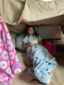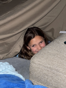 After playing with muffin the cat and swimming they came home and Ivy got to enjoy the tent too with our movie night
