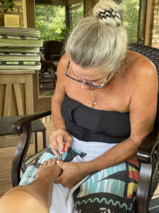 Thankful to get out of the house! Mommy and Ivy went to Mimi’s to swim and Mimi painted Lisa’a toes since she missed getting to go on the mother/daughter pedicure day