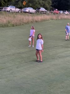 Mimi and Ivy rode bikes and the golf cart then picked up Leia to join in on the fun