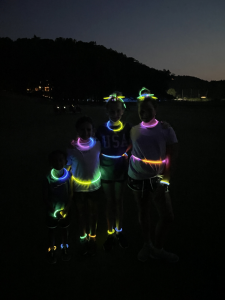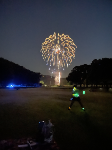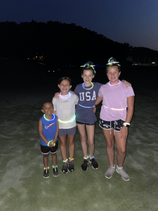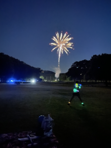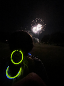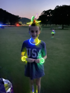 We were up bright and early to be up at horse ranch for a 6:30 lesson. Lisa’s car would not start so we had to take Chris’s while he put a battery charger on the car to take it to the shop for a new battery. When we pulled into the ranch Mackenzie was pulling in too. Lisa offered to bring her home so Mark could go home but he said he would do it so she headed home to pickup a little after being down for the week. Once the girls got done and house picked up Lisa and Ivy escaped the house to run to Athletea since they were running a sale, go swim and have lunch at Mimi’s, then we ran to Hobby Lobby to pick up a couple things we had been putting off getting. When we arrived home Grandpa and Deedee were already there. We cooked some tacos then headed to the Hoover Country Club fireworks that evening with the Talley’s. It was fun throwing balls, freebies, and enjoying sweet time outside. As the sun set we pulled out the glow sticks we had grabbed that afternoon. The kids made necklaces, bracelets, anklets, and even belts with the sticks; they provided a lot of entertainment but best part of the glow sticks was that we could see them and find them in the darkness before the show. The show was good the fellowship was the best.