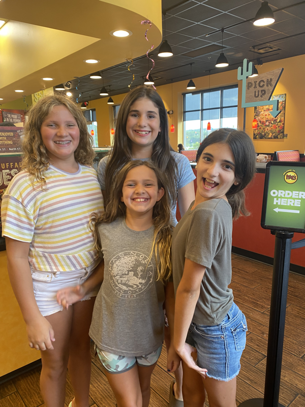 Tuesday, Grandpa and Deedee took the girls to dive and swim while Lisa and Chris worked. The girls texted Lisa early to come up to get them and Ivy wanted to show us she got her back flip from the diving board. The girls hung out at the house most until Lisa took Leia to vision therapy then after it Mimi picked up all 4 grand-girls for for a Mimi night. They swam, hung-out in the basement, rode the golf cart, went out for dinner, and had a great evening with Mimi!