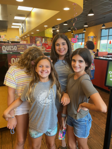 Monday morning we headed to “First Watch” for breakfast before the guys headed to the golf course and the ladies planned their day. We asked Leia and Ivy to agree on what they wanted to do. After much discussion we landed on going to JoAnn’s to get cake decorating supplies for Leia and fabric for Ivy. Before heading home from the store we did make a stop off at the bowling alley for a couple of games. Ivy worked on American Girl doll clothes with Deedee while Leia baked a three layer cake to decorate. When the boys returned from golf they told us they had made plans to meet the Talley’s at Taco Momma for dinner. That evening was early bedtimes for all after a tiring day.