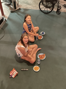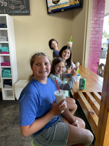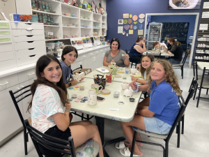Thursday, the girls ride was here at 5:45 ready to go to the horse ranch. They had a 4 hour Rider’s Club lesson. Lisa picked up Sara and Katie that morning when they texted they wanted to come back over to help purge more in the house; of course, Lisa always welcome help cleaning. Our sweet nieces got started on the pantry organizing while Lisa went to get Leia and Ivy from camp. We all organized a little bit more then paused at lunch and bounced ideas for a fun afternoon. After much debate we landed on painting pottery. We were loud in the pottery place with the laughter but had a blast. Afterwards, Lisa took the girls to get ice-cream … it was a fun mom/aunt move to ruin their dinner. Mark and Stacy joined us that evening for dinner and hot-tub soak too. What a great day … productive and fun!