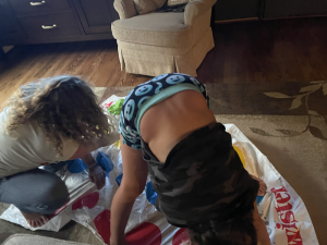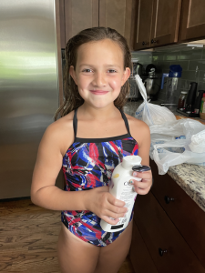 Tuesday morning we were up early for horseback. Horseback has been fun this summer but the 6am arrival time has worn on us all; we all were happy it was the last one. Lisa went to pick up Ivy early for her dive practice and Leia asked to leave too since her foot had been stepped on by a horse again. Lisa agreed to both girls leaving since our carpooler, Mckenzie felt faint and went home early to save a yo-yo drive. We did pick up groceries and of course Ivy wanted to smell the body wash that ended up popping up on her face. The day was pretty low key after we got home with work and playing here. Chris got home that afternoon and we had family time watching the girls play twister and entertain us with their shenanigans, they were hyper.