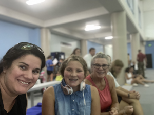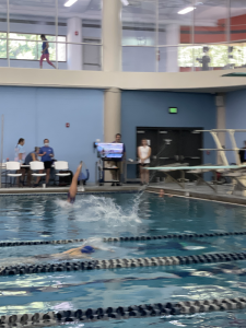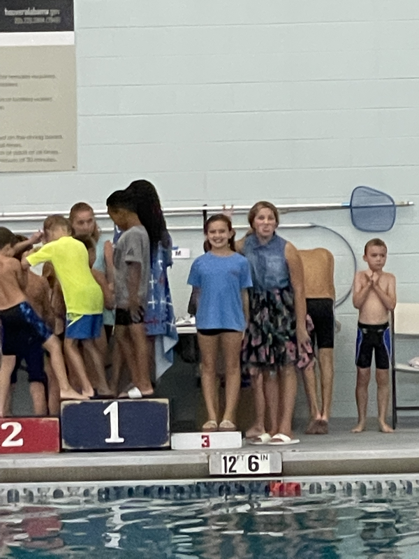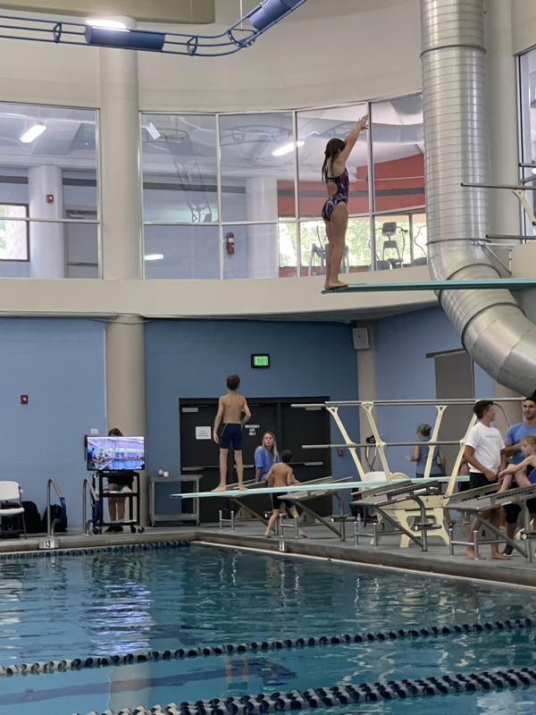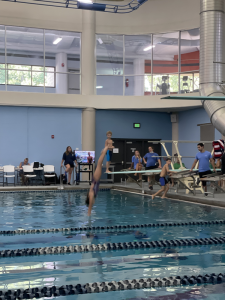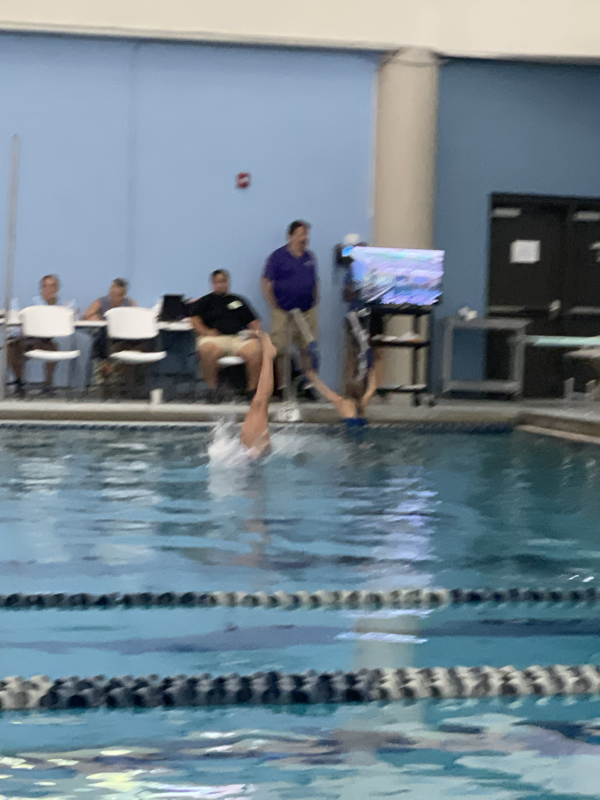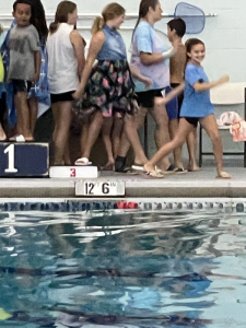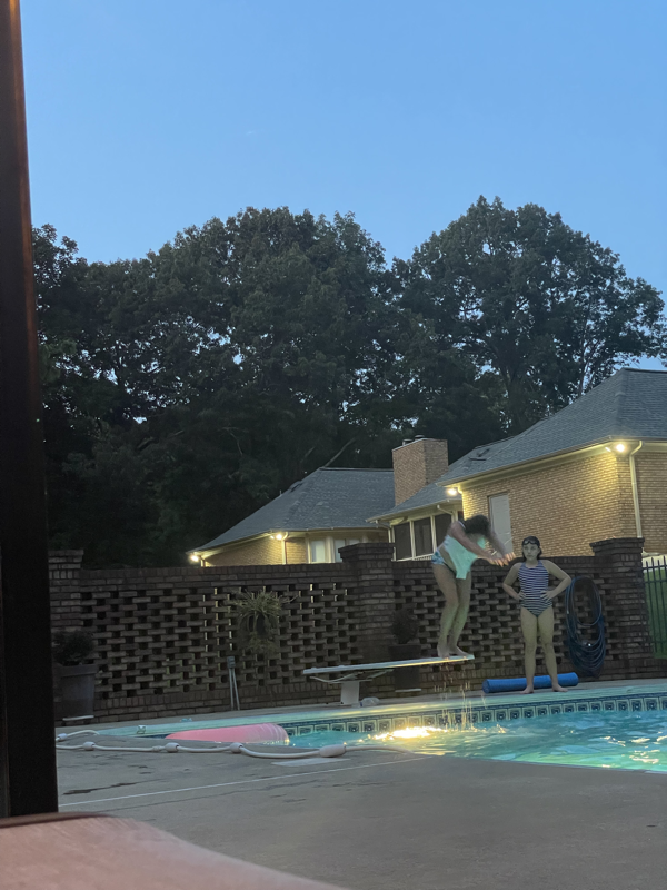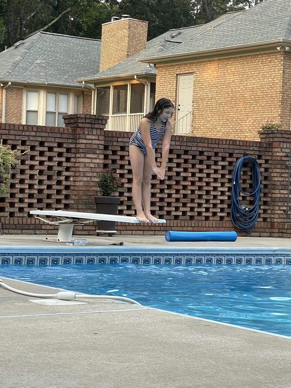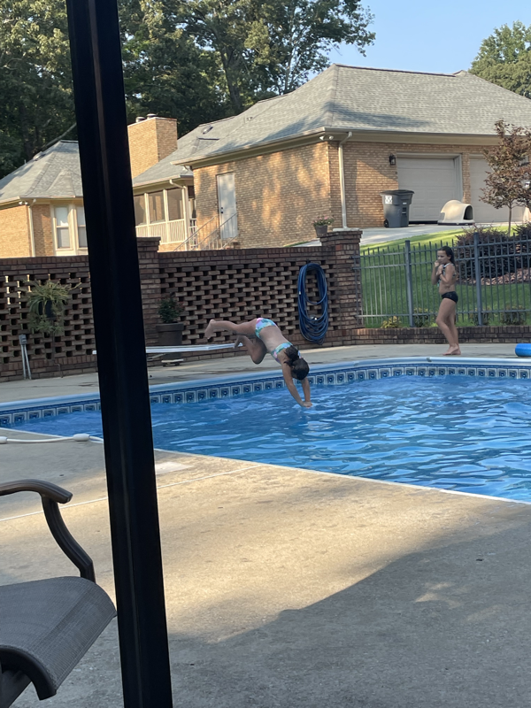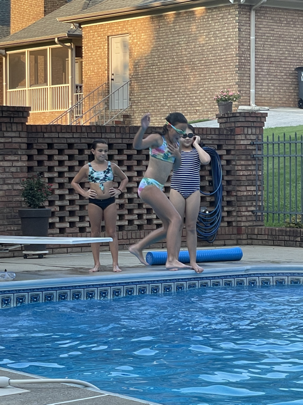 Wednesday Ivy had a regional dive competition. Mimi, Leia, and Mommy were able to go to cheer on our diver. She did great! Her group had the most in it so took longer than expected but Ivy got to do 3 dives from the 1M board and 3 from the 3M board or high dive. This was the first time Ivy had ever jumped off the high dive but she did amazing! She ended up with 4th place on both boards. After she finished we met Stacy, Katie and her friend, Kristen for lunch then headed home to finish work and pick up the girls friends for a little night swim at Mimi’s. The girlies all seemed to have a great time. Leia’s friend, Anna Claire had dance camp the next morning so had to go home but Ivy’s friend, Evelyn came back to spend the night with us.