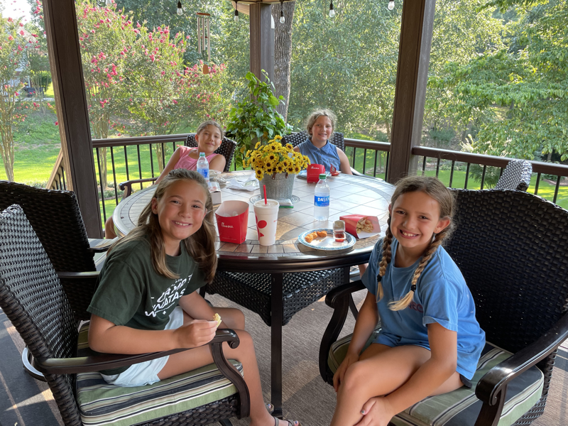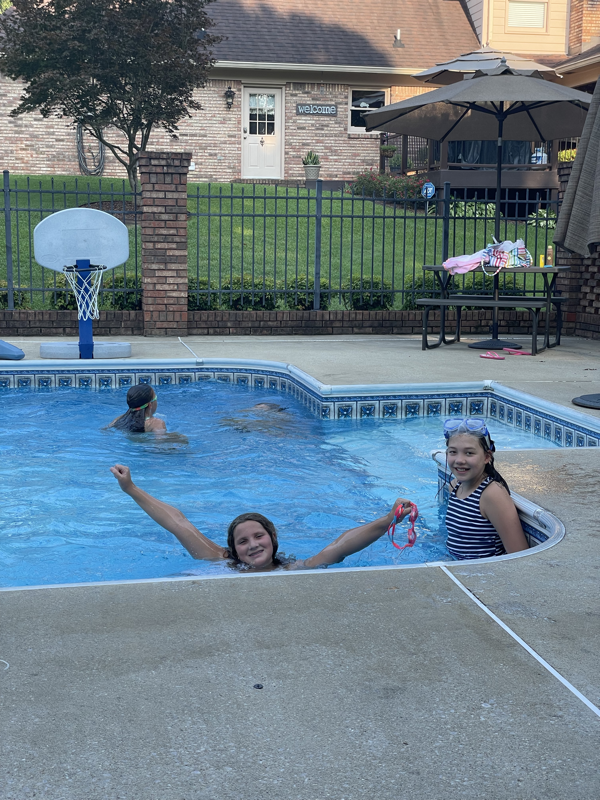 Sunday provided us another chill morning. Savoring the last days of summer. After church and morning R&R we headed to Mimi’s for lunch with family. The ladies enjoyed watching Katie, Leia and Ivy swim. Chris chilled out inside and grilled fish. Mark washed his car and grilled chicken for the non-fish eaters. It was one of the best lunches full of good meat and fresh veggies. The Rhoads headed home for D-group meeting that evening while we chilled out watching our mermaid Ivy swim until she was swam out. Ivy has swam more than anyone else in the family this summer at Mimi’s pool.