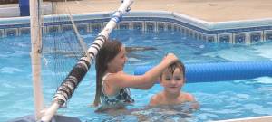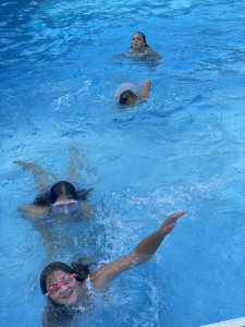 Night swimming with friends complete with team race