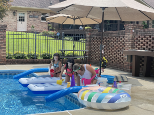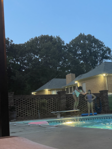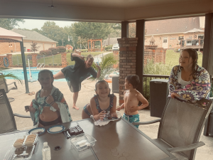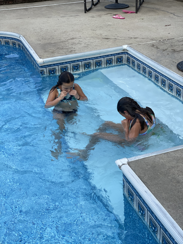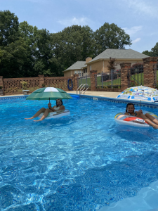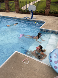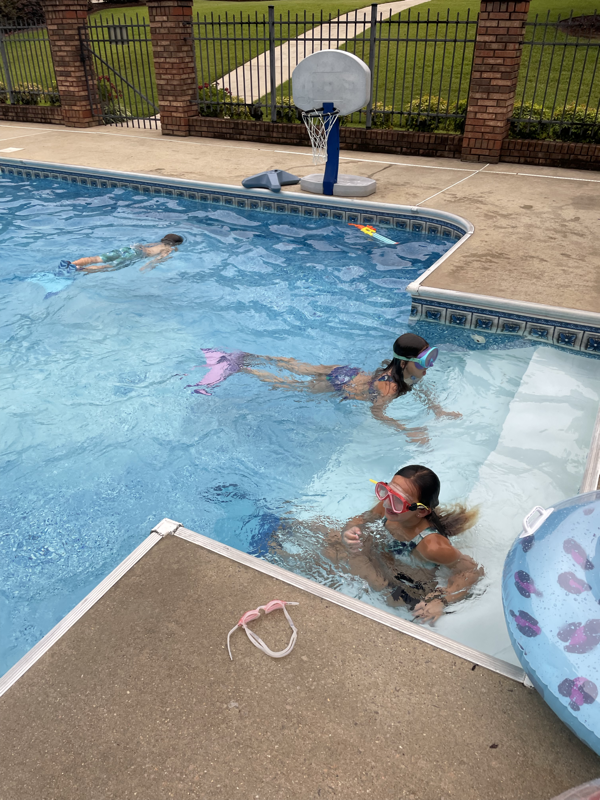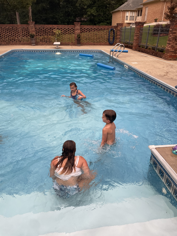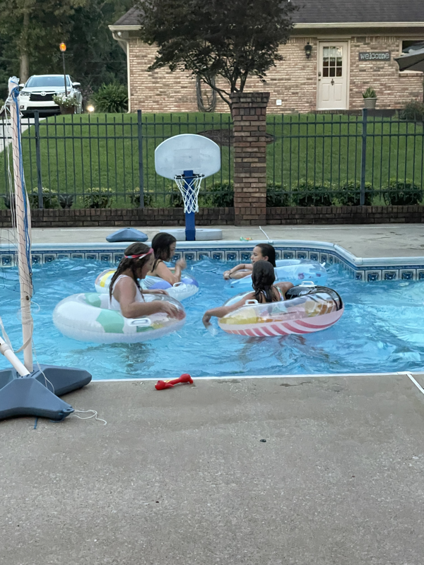 Saturday, horse back lessons were cancelled so we chilled in the morning. Sweet Mimi ran to the store since her baby girl’s ear was messed up and she knows when a ear infection comes energy level plummets. We headed to Mimi’s mid afternoon to prep for our guest at Mimi’s house since we invited the Evans to Mimi’s pool that afternoon for cookout and night swimming. It was a fun night full of laughter and sweet fellowship.