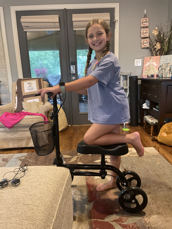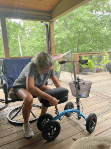 Lisa could not put any weight on her foot so called a neighbor to get a scooter and Mimi called a friend so know we have one for upstairs and downstairs