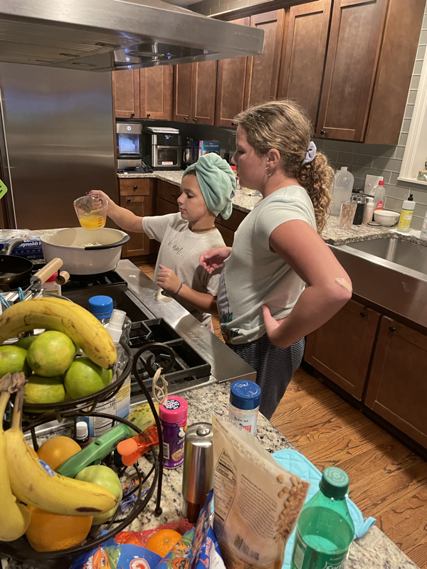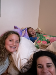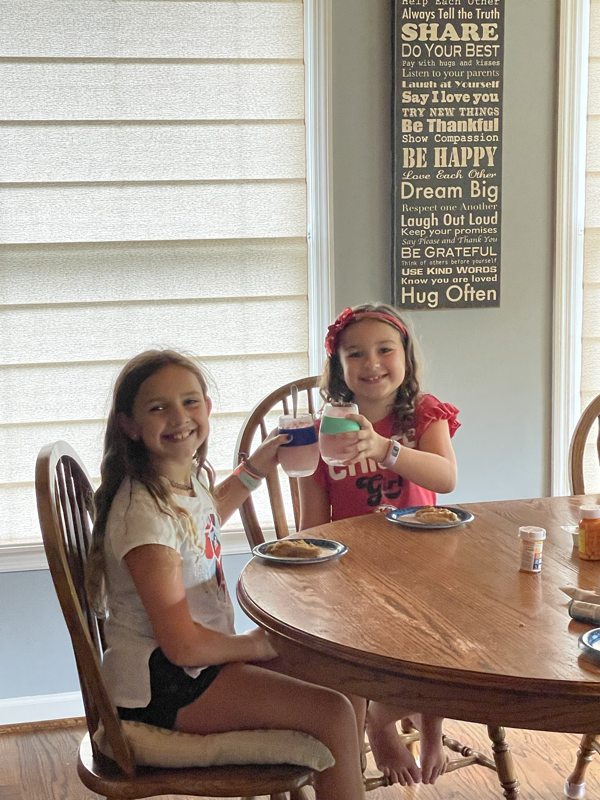 Friday, Chris took the girls to school. Mimi came over that morning to have breakfast with Lisa. We chilled out at the house all morning. Both Chris and Lisa worked some. Chris was feeling good and Lisa was stir crazy in the house so we ventured out to a meat and three for lunch. It was so nice to get out of the house. Ivy texted from school and asked if Olivia could come play so we texted her mom and Mimi wen to get Crumbl for the kids as a fun Friday treat. Leia got invited to go get ice-cream with Alex so she saved her cookie. Ivy and Olivia opted to have half a cookie and half a cup of strawberry daiquiri. Leia asked if Alex and Max could come in to play when they dropped her off so we had a full house for the afternoon. Mimi and Katie also came over after they dropped off Sara at dance too. We all enjoyed a nice visit with friends. After dinner we got baths and had some family time watching Heartland before bed.