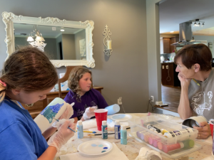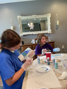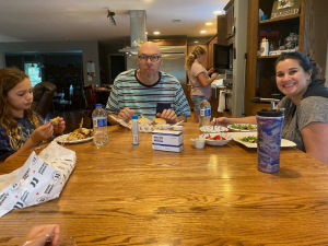 Saturday morning, was another home morning for Lisa and Chris. Grandpa and Deedee came that morning and brought entertainment for the girls painting cups then took them to the park and pool. Chris and Lisa stayed the course propping up Lisa’s foot and resting. They returned when it started storming outside and the pool closed down to paint some more and play at home. That evening the six of us headed to Bistro V for dinner and sweet fellowship.