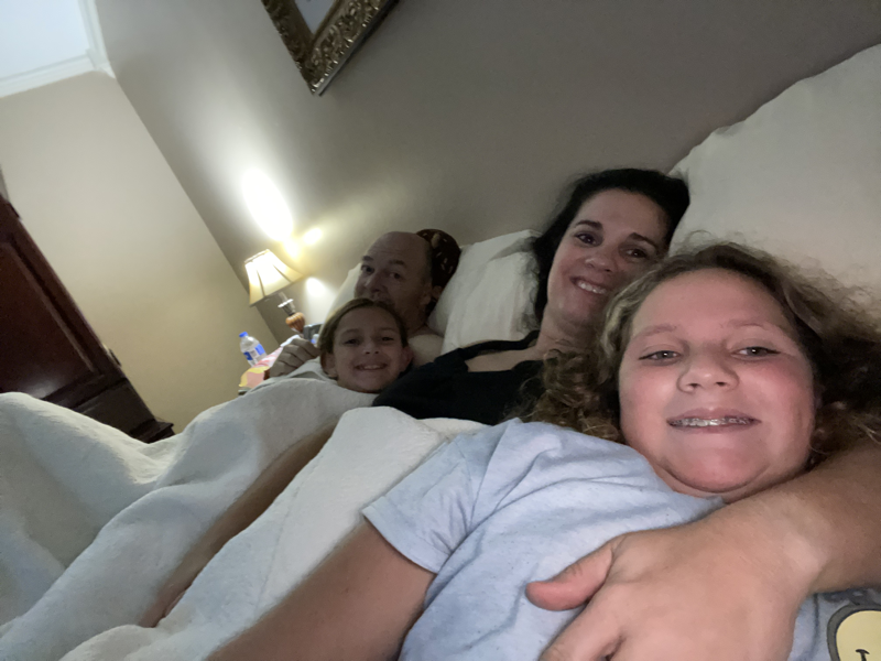 Sweet Leia has been sleeping with us the last few days. We had a family Friday night snuggle in bed watching Heartland. We have watched a lost of Heartland recently but it is nice to have something we all enjoy that does not require much energy right now. Emotional we are drained. Grateful for time with our sweet family!!