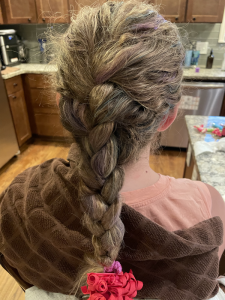 Thursday was wacky day at Pizitz. I am not sure how wacky Leia looked but the purple chalk took a few washings to come out and she enjoyed it. I think she is beautiful even when she tried looking wacky