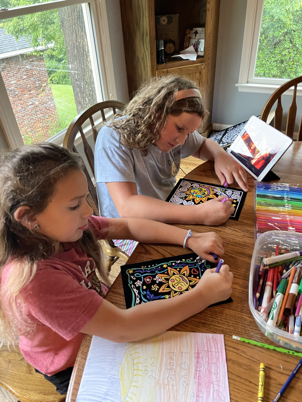 Friday evening the girls played with Ale and Max. Apparently Max was a little tiger separated from his mom and had to be bottle fed. They enjoyed the art stuff Deedee gave Leia too. Friday night was one of the first evenings we have had game night and dinner with our neighbors since before Chris’s diagnosis. It was so fun getting to play cards and enjoy sweet fellowship with neighbors and friends.