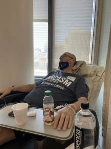 Friday finally came…the day for our first infusion. We did not know what to expect. We were nervous. We listened to the nurse and friends who have had infusions to know what to take in our hospital bag. We had plenty of snacks, water, blankets, and entertainment. Chris had to get blood work an hour beforehand to make sure several levels were good and he was healthy enough to take the infusions; this will be done before every infusion. It felt like a long time waiting to be called back with 5 different entry points. We wondered which door we would go through for the infusion. Right at 2 they called us back. We got a great room with a window for the first infusion and there was a recliner for Chris during the infusions. The nurse set up the IV then a pharmacist discussed the medications with us and went over the possible side effects before starting. We had to sign that we understood the risks for side effects; praying Chris’s body responds to the medicine without the nasty side effects. Thankful he napped during part of the infusion to pass the time quicker. It was not nearly as cold as everyone told us in the room. We expected the infusion to take a little longer than it did but we were thankful when it took about 45 minutes shorter than expected and we got to head home. Chris seemed to tolerate the medicine well. Now we wait to see how his body responds the next few weeks. Praying blessings over him and our family.