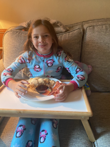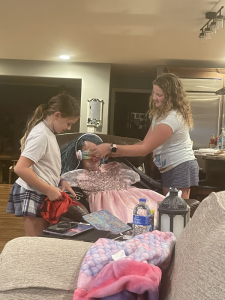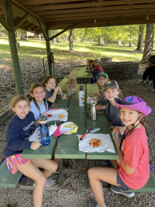 The girlies woke up to breakfast of their choice at Mimi’s. They love breakfast at Mimi’s! Both of them fueled up for the day then Mimi drove them home and helped pack lunches and get the Comfort girls out the door for their fun day at Girl Scout camp