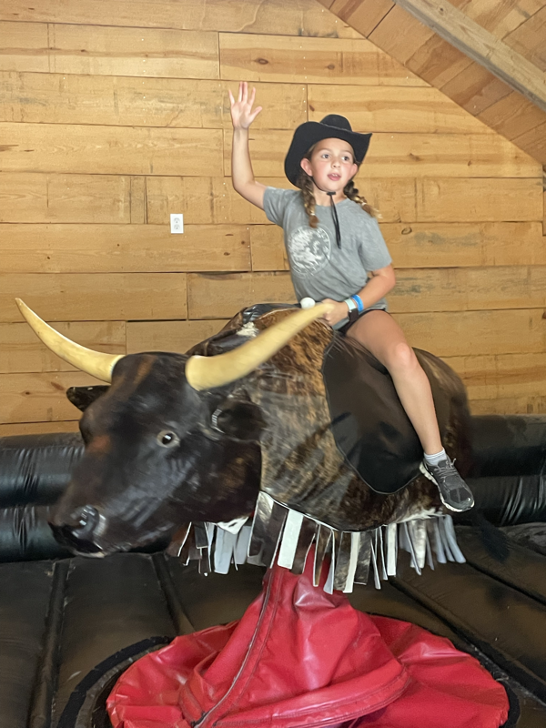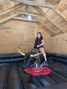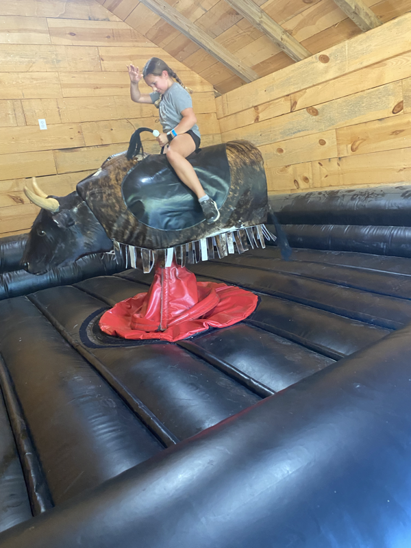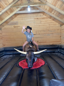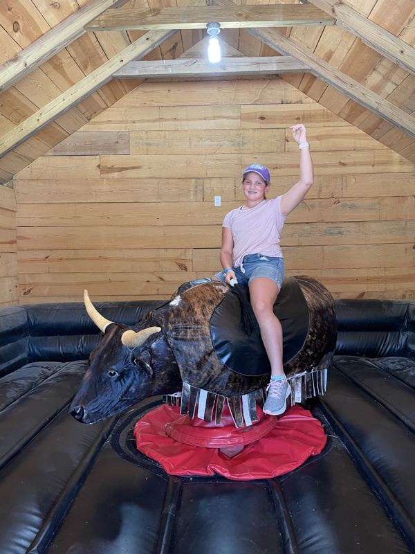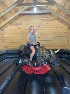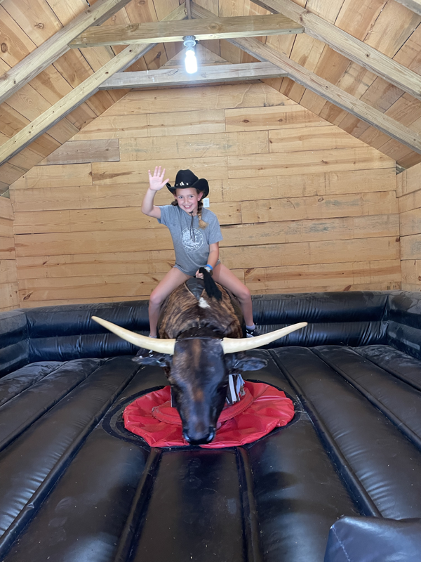 Momma decided she needed to have fun too and rode the bull … daddy was not happy when he heard since she was suppose to not be on her leg very much and opted to ride the bull but the girls said you only used your thigh muscles