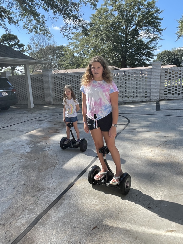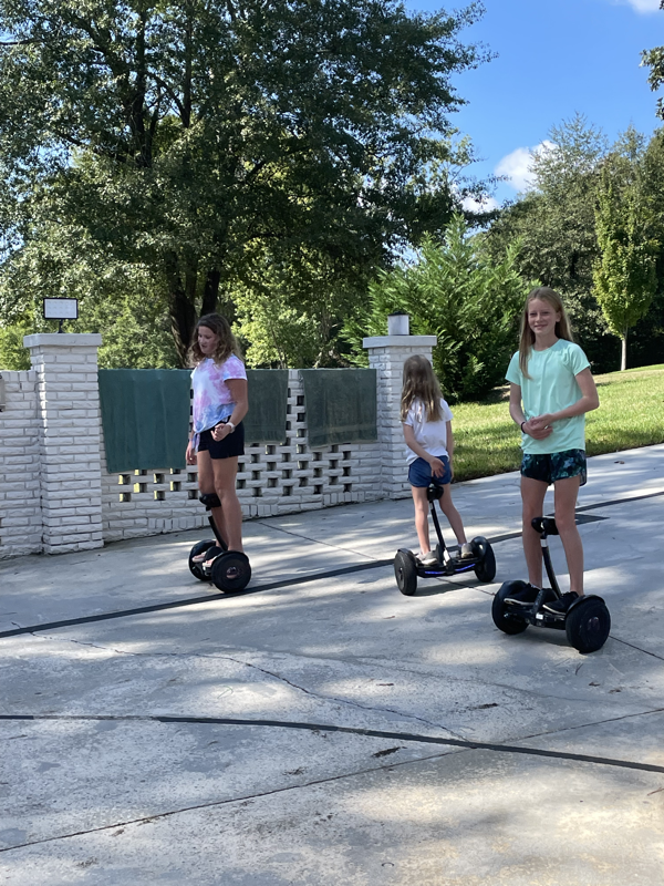 Friday morning the girls chilled out while Chris worked. Mimi met Lisa at Costco to drop off her car for tire rotation and to check one that had been low the day before. Lisa went back home to get Chris’s car for the day while Mimi headed towards the beach to drop Sara off. Lisa and the girls chilled out a little bit then headed for a day of fun with the Norris’s and to get the girls hair cut and colored. There was so much laughter, girls sold lemonade, they played in the pit, rode segways, swung on the swing-set and more while the moms visited. it was well past lunch time so we grabbed Chick-fil-A. The girls got to play a little bit longer then we headed home since it was close to time for daddy to finish his work call.