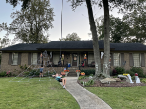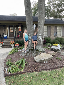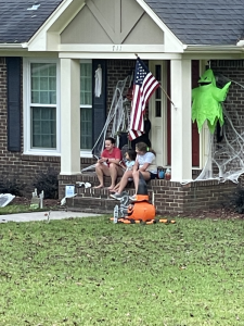 Daddy took Lisa back to get her car at Costco and shop then headed home since Mimi was stuck on the interstate over 2 hours due to a shut down. The girls asked about decorating for halloween when Lisa got back. The Comfort girls all headed to the basement to get find the decorations then took them out front. A hour later we had ghost, spiders, and skeletons decorating to make the house a little more spooky for Halloween. Lisa fixed dinner and we all sat around the table telling Chris about our days, laughing and enjoying sweet time. That evening we had a movie night watching “Lemonade Mouth” with popcorn and sweet family time. Throughout the evening both girls mentioned it was one of the best days we had in a long time. It was a great day! Thankful for this day!!