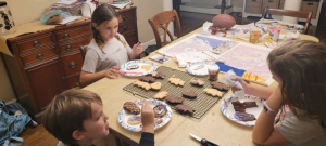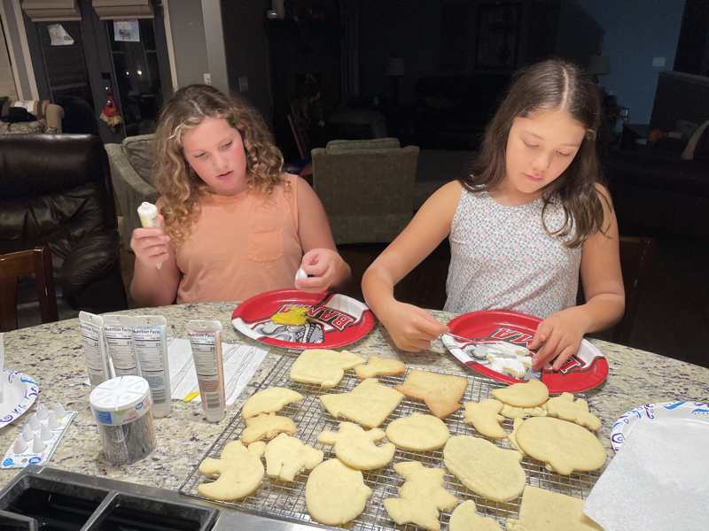 Leia’s friend Anna Claire came to our house not long after Ivy left. They started off on the swing outside planning out what they wanted to do that afternoon/evening. They baked cookies, decorated them, watched “Series of Unfortunate Events” and discussed the books, played Wii, made bracelets, got in the hot tub, made up relays outside, enjoyed time in the playroom, went back to the swing, popped popcorn for movie night, and then put themselves to bed. We loved hearing the laughs and seeing them enjoy themselves.