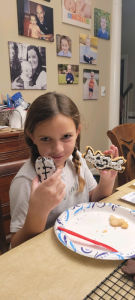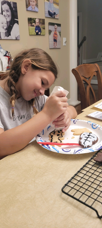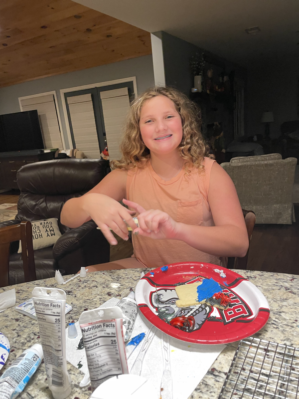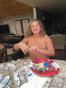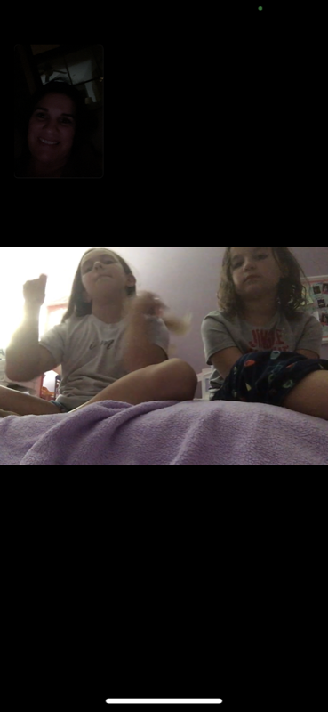 They picked her up in the jeep with the top down for a cool ride. Ivy said they baked cookies, decorated them, played volleyball, monkey in the middle, played with barbies, listened to music, and watched TV through out the afternoon/evening. Bedtime was at 11. We Face-timed before bedtime and Ivy did great sleeping through the night but still woke up by 6 am so did not get enough sleep to be a pleasant child the next day but she had fun. Momma loved the pictures Mrs Sarah sent throughout the night!