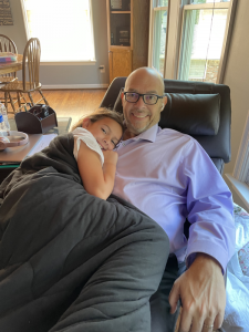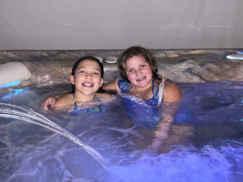 After we let Ivy sleep close to an hour we woke her up to head to the stores. We started off at Kohl’s, Target, Halloween Spirit, and Costco. We could not find Halloween costumes but we did find a winter coat for Leia, costume accessaries for Ivy and Leia, and pants and a gel pad for Chris. The girls were crashing after the 4th stop so we headed home to have dinner. Lisa and Ivy headed to the hot-tub for some relaxation. Leia joined us after a little bit so we got to have fun mother-daughter time; wish Chris could have joined us but he is not suppose to get in the hot-tub during his infusions. We did get some sweet family time watching “The Voice” before bedtime but had to get the girls down at a decent time after their late night Sunday evening.