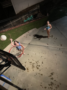 Sunday morning, Chris’s team played at 8:30 so he settled in to cheer on the Jets. The girls played on their iPads while Lisa cooked breakfast. We had a lounging morning at home but headed to Mimi’s for lunch mid morning. It was good for all four of us to get out of the house together. We sat outside at Mimi’s and enjoyed the breeze. The girls roamed between the back porch, playing inside, the basement, and riding the golf cart. We head to head home at 2:30 though to get back for Olivia and her mom to pick up Ivy for her spend the night fun at their house.
