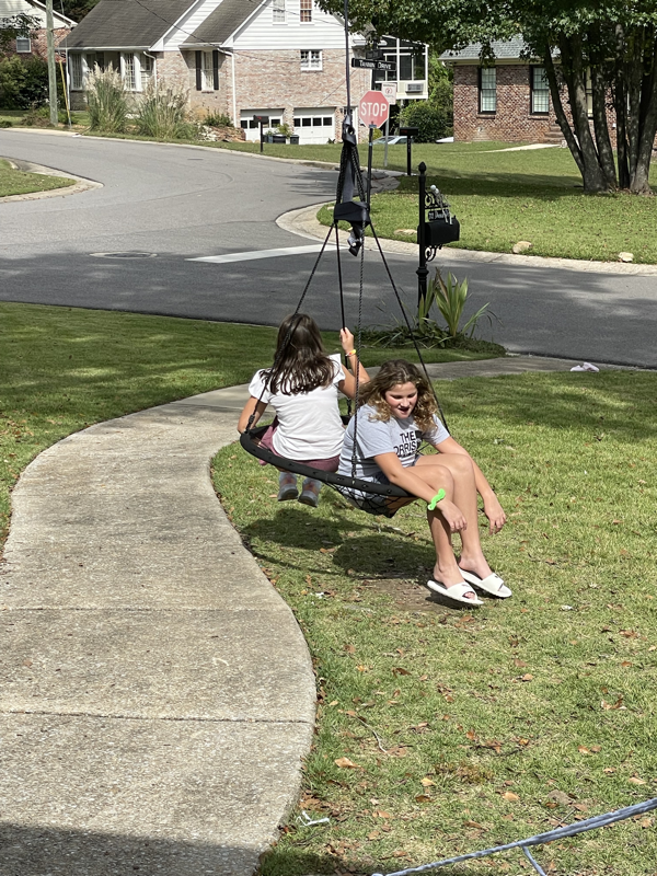 It had been several years since we had gone to this farm. The last time we went it was a blast but this time was even better. They had added so much since we went last time. There was swings, air track, mechanical bull, roller coaster, corn cannons, zip-line, multiple slides, bubble stations, jungle gyms, mining, animal shows, and more. There was so much to do we did not get to do it all before the girls were ready but feel like we had a fun filled day. Chris texted on the way home that he was going to take a nap so we hung out at Mimi’s for a while before going home not to interrupt his nap. We snacked for dinner, rode the golf cart, girl’s showered, and enjoyed time in the swings simply fellowshipping. Thankful for the sweet time with our Mimi and that she joined us for a fun day!