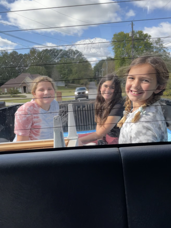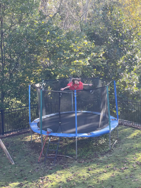 Fun time in the back of the truck and Ivy got dressed up just to jump