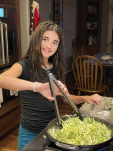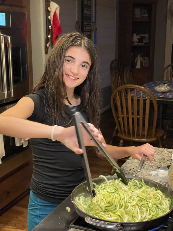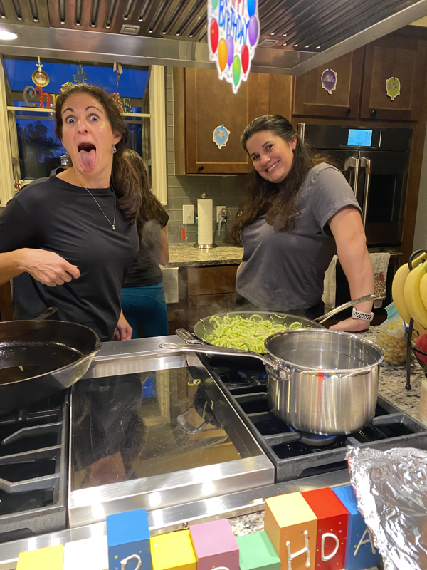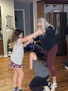 When the girlies got home we the ladies headed to the hot tub and the girlies to the trampoline while Chris took a little nap. We chilled out in the hot tub for a little while then headed back in to cook. Leia played “Happy Birthday” on her clarinet for Mimi then they headed downstairs to play. Mark and Sara arrived after work and dance to join in the celebration. As dinner was being taken off the stove Chris’s pain elevated so he headed back to our room to stretch out. the rest of us went on with the celebration enjoying dinner, presents, and cake.