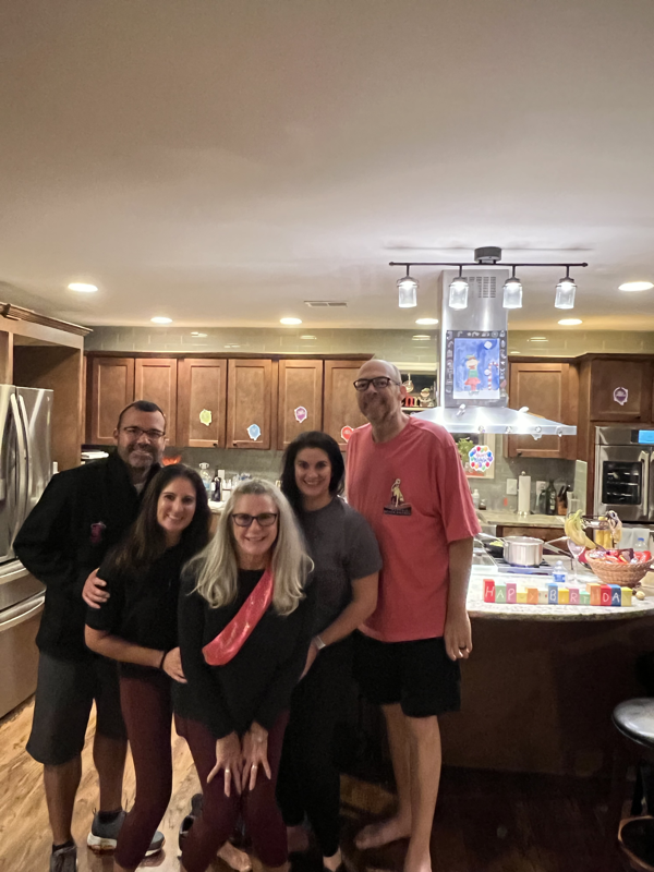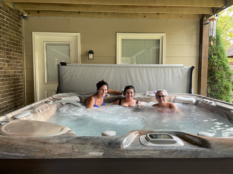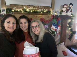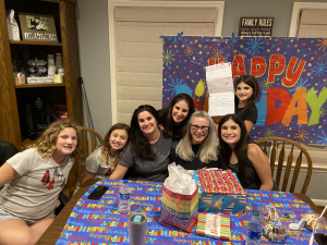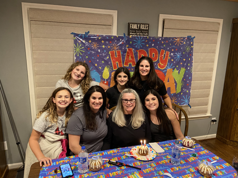 We were thankful to get to celebrate with Mimi for her birthday this year. She went to have breakfast with Al, her house was cleaned, and then she headed to Vestavia. We chilled out at the house a little bit. Mimi delivered the little table we had made for next to Chris’s chair. Stacy, Mimi, and Lisa went to Kendra Scott to let Mimi pick out a piece of jewelry for her birthday discount. She ended up buying both her daughters a happy too on her birthday; her generous spirit is an inspiration. After our little shopping we grabbed the bundt cakes for the evening celebration and ran by Urban Cookhouse. We headed back to our house to take Chris lunch and chill out with him. After enjoying the beautiful fall weather on the porch Mimi got a call her birthday present to herself was done from Mark Jewery so she and Stacy headed there to get it and the girls from school while Lisa chilled with Chris.