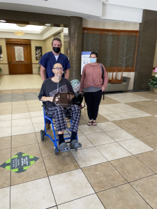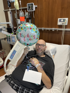 Chris was able to sit in a chair for 5 minutes and we were touched by a mentee that Chris has that sought out the hospital and managed to get a balloon to Chris just to let him know she was thinking of him. We are blessed to have sweet friends, family, and co-workers!