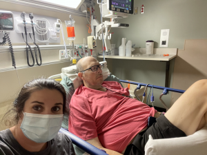 When we arrived Lisa blew Chris a kiss at the back of the ambulance, handed him his phone so we could stay in touch, told him she loved him as the medics wheeled Chris in the ER and Lisa headed to the front waiting room. There was tears with uncertainty in the front waiting room; thankful for the people who prayed with Lisa. Chris had his phone so he texted when he was awake to help ease Lisa’s fears. Due to his cancer diagnosis and current infusion treatment he was put in a private ER room. After a few hours Lisa joined him. So thankful to get to be together! So thankful to get to hold his hand! Thankful to be able to read the monitor to check on him. Throughout the night there were ultra sounds of his legs, feet, lungs, and heart. Cardiac doctors came in to inform us the fluid in the lungs from the clots were putting pressure on the right side of his heart. Oncologist team came to tell us the clots in lungs were bigger despite the blood thinner he had been on. The night turned into morning.