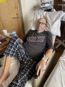 The morning nurses name was Anna and Jordan. They were better than the night team. We continued getting visits from cardiac, pulmonologist, and oncologist. Each time they assured us there was a room coming available in an hour or two. That evening Chris’s oncologist came to see us and everything hit us like a ton of bricks. He had to be blunt, he had to be honest but it did not make it easier to hear. He told us the infusions were not working and we needed to be prepared to either enter hospice or try the last ditch effort of chemo. We still desperately wanted out of the ER. Our doctor pulled his weight and made it happen finding us a room on the oncology floor. We moved to it; the nurses were great. We were thankful for a more comfortable place for Lisa to sit and sleep. We prayed, we cried, we talked … ultimately the decision was Chris’s on if he wanted to enter hospice or fight. Lisa told him she would support his decision no matter what and simply prayed for agreement in our decision. Ultimately, he opted to start Chemo on Friday evening.