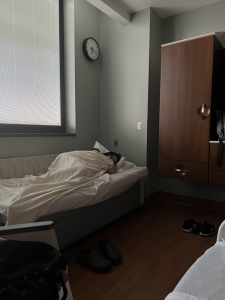Momma was so thankful for a room with a shower, comfy place to sleep, and clean clothes!