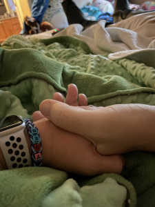 After a scary Monday night Tuesday we needed a calm Tuesday morning. Lisa was able to snuggle on the couch with the girls before school. That afternoon we wanted to have fun and laughter in the house. We still had not gotten to celebrate Deedee’s birthday with her so decided to celebrate and add a little joy in our life and celebrate. It was not as big of a celebration as normal but it was sweet time. Mimi went by to get Crumbl cookies for us on her daily visit to make sure we were okay. Leia played “Happy Birthday” for Deedee on the clarinet while Ivy and the rest of us sang. We enjoyed the cookies and celebrated being together for the day. It was a great ending with our little family snuggled up together again in bed. So thankful for sweet gift of time and any moments we get together!
