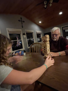 Friday evening was the Jinga night. There were belly laughs! First time we had the belly laughs like that in a while. Momma’s heart was full of joy hearing the girls laugh and being part of it. We did bless uncle Johnny playing with hurricane Ivy who wanted to make sure Johnny lost.