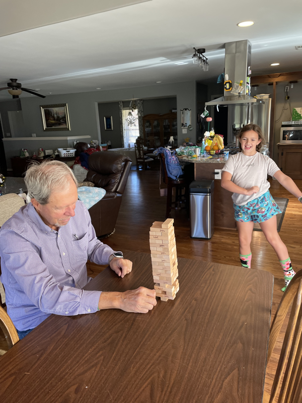 Saturday, momma’s heart was full watching Leia teach Ivy to play her clarinet and enjoyed watching Ivy have fun playing Jinga with Grandpa