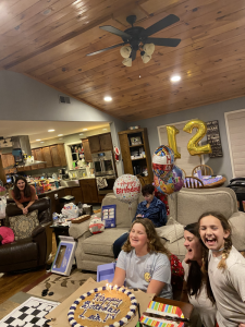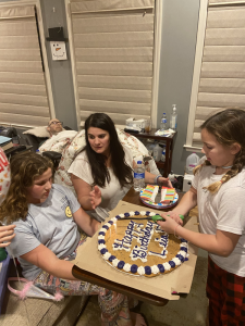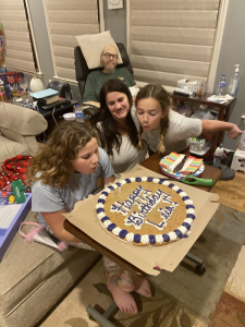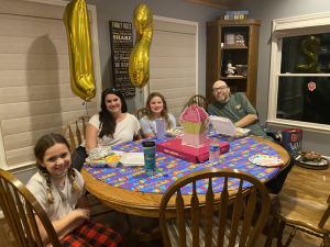 Grandpa got back with dinner from Pita Stop. We all enjoyed dinner and sweet fellowship. Leia face-timed the Requena-Comfort’s then opened her presents. She, Ivy, and Katie started playing checkers as they waited on Sara to finish dance to do cake. We all sang happy birthday to our girl, enjoyed cake, and snapped a quick picture of everyone here celebrating our 12 year old before calling it a night.